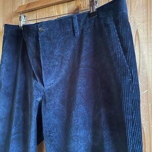 Excellent pre owned condition showing no significant signs of wear. Worn only once. Navy Corduroy with subtle paisley print throughout. Italian 54 = US 38. Waist measures 19” across, inseam measures 31”