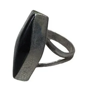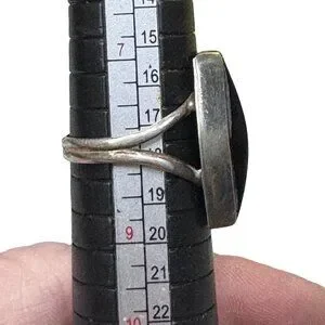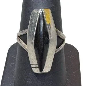 Vintage Modernist MCM Sterling Silver Ring Black Onyx Marquise Cut Stone Size 8