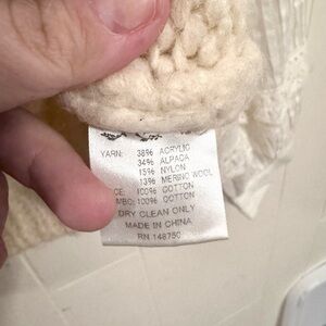 Sea New York Emma Eyelet Combo Sweater Cream Wool Alpaca Cottage Ruffle Boho L