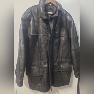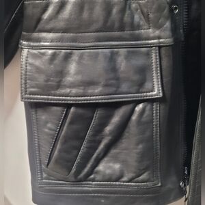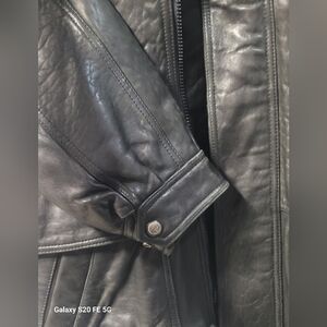 Authentic Andrew Marc black leather coat.