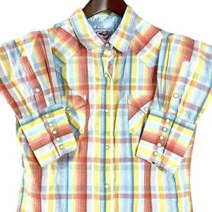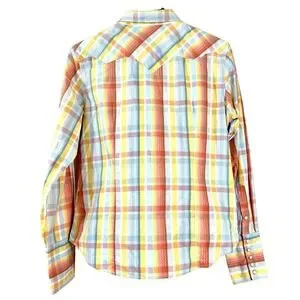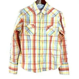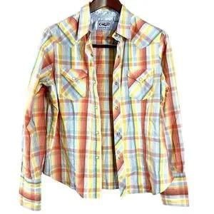Roper Women's Shirts Orange Plaid Cotton Long Sleeves Western Cow Girl Size L