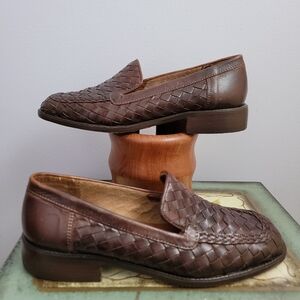 Talbots Vintage Brown Woven Leather Loafers Size 7