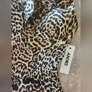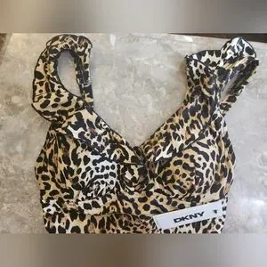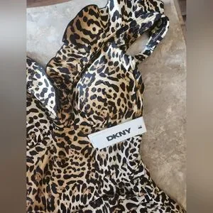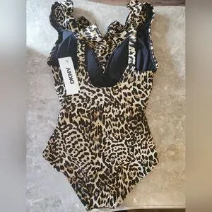 S M L XL DKNY Swim One Piece Ruffle V Neck Swimsuit Leopard