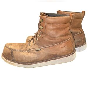 pre owned Red Wing Irish Setter. they show signs of wear but have tons of life left in them. they are the 6" lace up Wingshooter. please see pics for condition. the boots will need a pair of insoles I will be buying some in few days but until then, they need some. some. some stitching on side of toe area has ben rubbed loose but it's not open or separating. still very secure. will clean up real nice and will provide you with years of comfortable safe durable and stylish footwear. the classic Irish setter red wing boot.