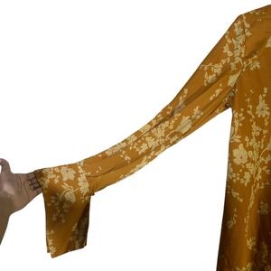 Free People Womens Aries Floral Mini Dress Size S Mustard Open Back Festival