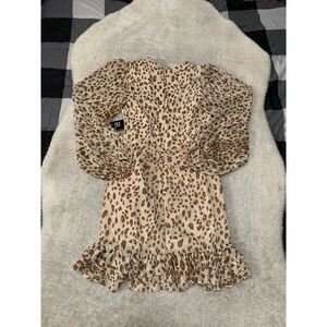 Express Leopard Ruched Ruffle Dress Size Small NWT
