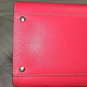 Beautiful Kate Spade satchel in a bold, beautiful coral hue. Features dual handles and a detachable, adjustable shoulder strap. Super roomy inside.