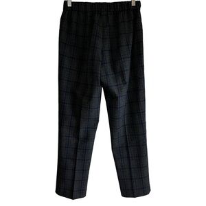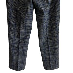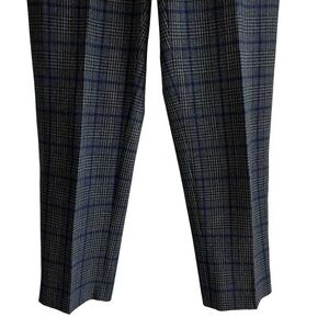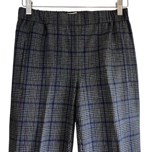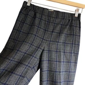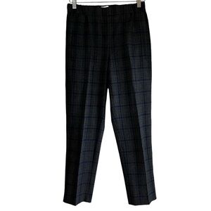 These cropped Darontal trouser pants from Aritzia's Wilfred line in a grey, black and blue check plaid pattern. They are classic pull-on pants that are simple and flattering. They are cut from a textural yarn blend with a hint of stretch. Front welt pockets. mid-rise, ankle length, cropped ankle length. They’re a size 2 and in excellent condition Measurements Waist 14” Rise 10” Hip 19.5” Inseam 26” All measurements are taken while laying flat and are approximate