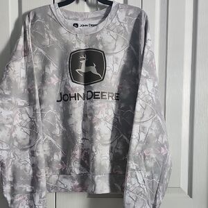 Stay stylish and comfortable with this John Deere gray camouflage sweater. Perfect for casual outings.