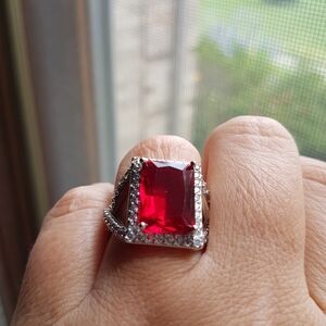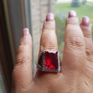 #swarovski #crystal #solitaire #ring #925 #sterling #silver #stamped #plated #vintage #rectangular #emeraldcut #garnet #red #jeweltone #wedding #anniversary #classic #classy #bridal #birthday #weddingguest #wedding #datenight #cruise #holidays #gift #luxury