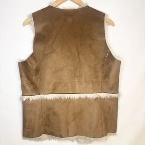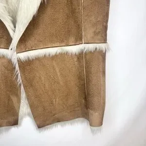 Hollister Tan Faux Suede Vest with Cream Faux Fur Lining Size Large