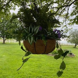 Faux Floral with Ferns Hanging Basket!! Looks absolutely real!! Personally made by me!! Hand crafted! 💕