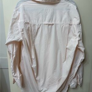 Oversized designer button up perfect for spring and summer layering. Color is a subtle cream-pink-peach.