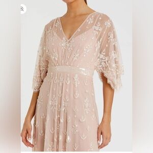 NWT | Mac Duggal 9144 Pink/Blush Flounce Sleeve Embellished Mesh Gown Size 10