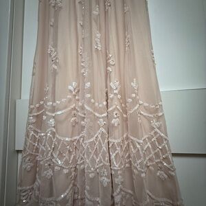 Please note due to the intricate nature of the gown, it's possible there could be a slight flaw loose string, missing bead or sequin, etc.) After close review, I'm not finding anything major.