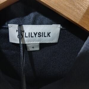 Lilysilk Shirt Womens 4 Black Mulberry Silk Tailored Button Front Blouse NWT