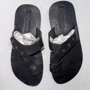 Qeanne Brand Handmade Ghana Kente Leather Sandals Flip Flops Thongs Tribal Batik Style, UNISEX SANDAL USA women size 10, men’s 8, eu size 41 in good preowned condition.