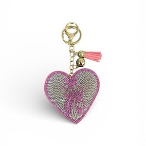 Add a touch of elegance to your accessories with this pink heart keychain. Featuring sparkling details and gold accents, it's perfect for any occasion.