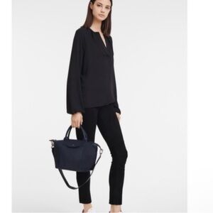 Rich leather and impeccable topstitching give a refined aesthetic to Longchamp's iconic Le Pliage shoulder bag, branded with an equestrian logo. Slim top handles and a removable shoulder strap let you style the chic look as you prefer.