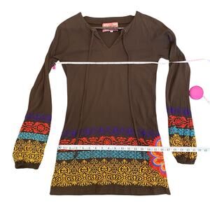 Johnny Was JWLA Womens Tunic Top S Embroidered Vibrant Long Sleeve Runs Small