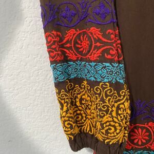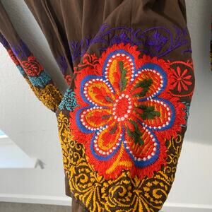 California, bohemian, artisan-inspired, western, intricate embroidery, vibrant colors, elastic sleeve details. Good Pre-owned condition. Runs small! Be sure to check measurement photos.