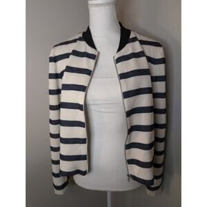 Emma & Olivia preppy navy and ivory striped zip-up