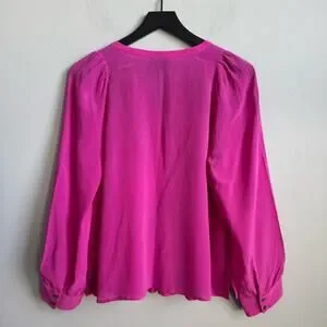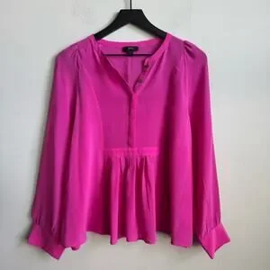 J. Crew Silk Pleated Popover Blouse in Fuchsia Pink Size Medium