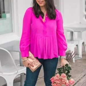 J. Crew Silk Pleated Popover Blouse in Fuchsia Pink. Women’s Size Medium. Excellent preowned condition. Smoke free home.