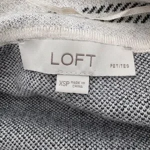 Pre Owned Womens LOFT Size XSP Black and Gray Knit Cardigan.Item in Like New condition No tears holes or stains.Knit cardigan with a classic black and Gray pattern. Ideal for layering.