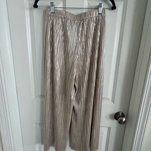 Chic pleated design, slightly cropped. Adds shine to any outfit. Ideal for versatile styling, dress me up or make these pants the statement with sneakers and a tee!