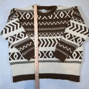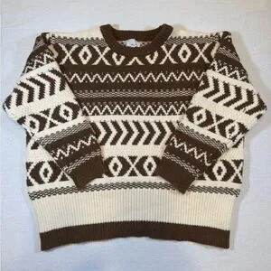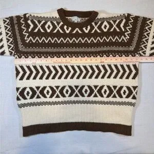 NWT Olio Women's Brown and Cream Patterned Sweater