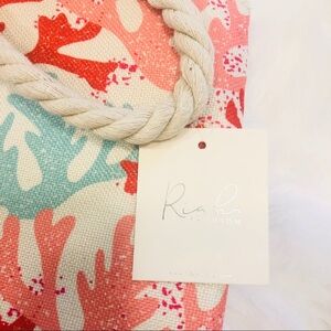 This large tote 21” x 15” laying flat. The inside has plastic lining and is very roomy. Perfect bag for the beach, pool or picnic. It zips at the top to close. Very cute!