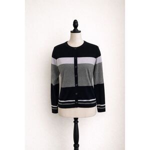 Dress Barn Black Gray & White Striped Cardigan | Women’s S | Button-Front Knit