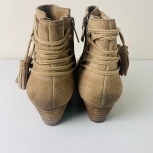 Vince Camuto Boots Size 7.5 Carlina Tassel Side Zip Ankle Bootie Beige Tan Suede