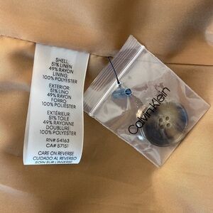 Calvin Klein vest. Animal print. One button closure. Pockets are decorative only. Pit to pit is approximately 18 inches. Length is approximately 27 inches. Comfortable linen blend. New with tag and spare button.