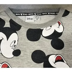 Disney Mickey Mouse Faces Pullover Crewneck Sweatshirt Gray Women’s X-Small 2/4