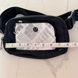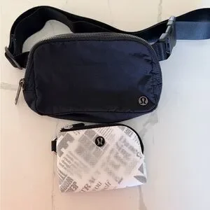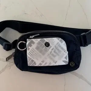 Black Lululemon crossbody bag perfect for everyday use. Measurements in photos. I am adding a versatile fun Lululemon card case with clip, pockets and zipper closure. Both in excellent condition.