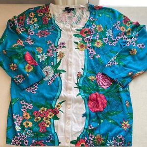 Talbots Blue Floral Lightweight Cardigan