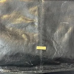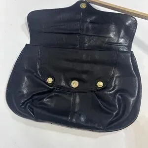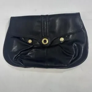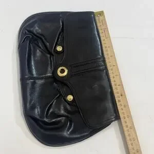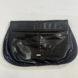 Perlina Black Patent Leather Black Kiss-lock Wallet Coin Purse Clutch EUC