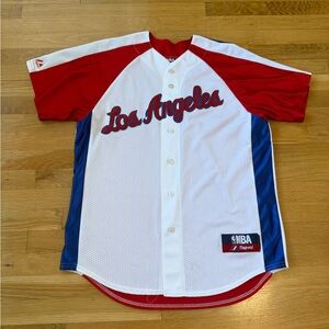 Vintage LA Clippers NBA Majestic Baseball Jersey Size L Red/White/Blue