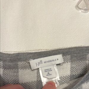 J. Jill Reversible Gray and White Gingham Crew Neck Sweater