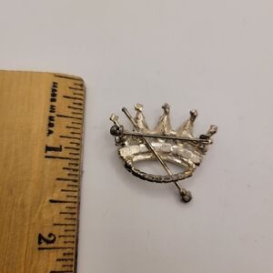 The Rhinestone Vintage Crown Brooch Pin is a luxurious accessory that exudes elegance and timeless style. Made with sparkling rhinestones, this brooch pin adds a touch of glamour to any outfit. The vintage design of the crown shape gives it a classic and sophisticated appeal, making it a versatile piece that can be worn on a lapel, collar, or even as a striking statement piece on a bag or scarf. Perfect for adding a touch of sparkle and vintage charm to your ensemble, this brooch pin is a must-have for any jewelry collection.