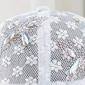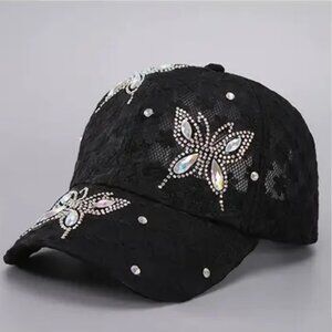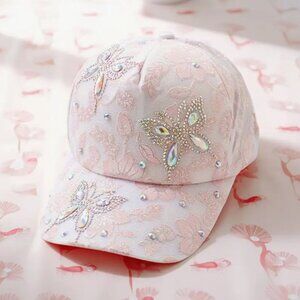 WOMENS WHITE BLING RHINESTONE BUTTERFLY BASEBALL CAP