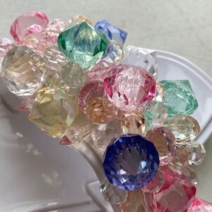 Chic white jelly sandals adorned with colorful crystal accents. Ideal for adding sparkle to any outfit.