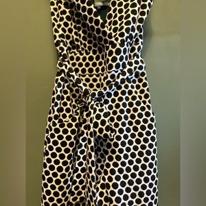 Stylish polka dot jumpsuit. Sleeveless design. V-neckline with tie waist. Perfect for any occasion.