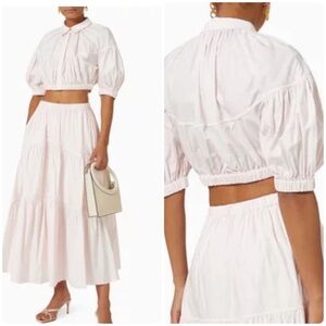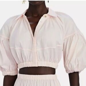 Timeless and versatile, Acler's new-season Marquis top is a perfect wardrobe investment. The midriff-baring cropped blouse is cut from crisp cotton and styled for an elegant feminine look with a shirt collar and voluminous short sleeves.