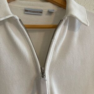Vintage Nordstrom white cotton zip-up knit cardigan jacket with little pocket details, collar, and ribbed trim #preppy #90s #y2k #zipup #zipupknit