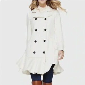 BCBG Maxazria wool Ivory Talia Pea Coat peplum Size XS