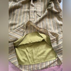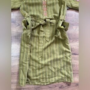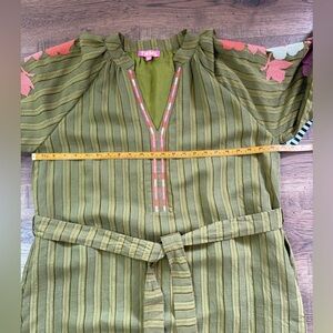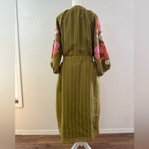 THML Olive Green Embroidered Striped Floral Maxi Dress L Ballon Sleeve.