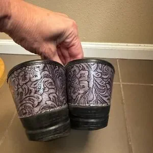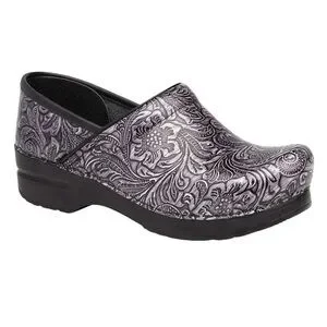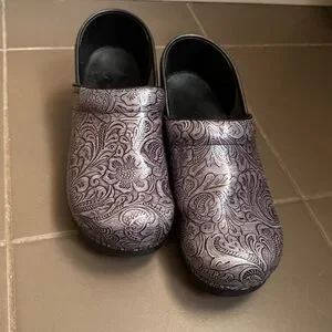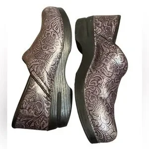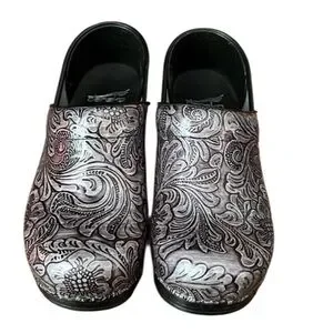 Fabulous Dansko Grey Silver Floral Leather Gray Slip On Clog Women's EURO Size 40, US size 9.5-10